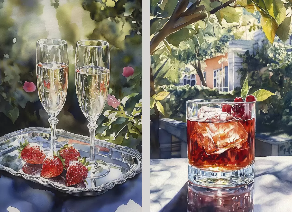 Poster Deliciosos cócteles con bayas, estilo acuarela, estética, naturaleza veraniega d00415