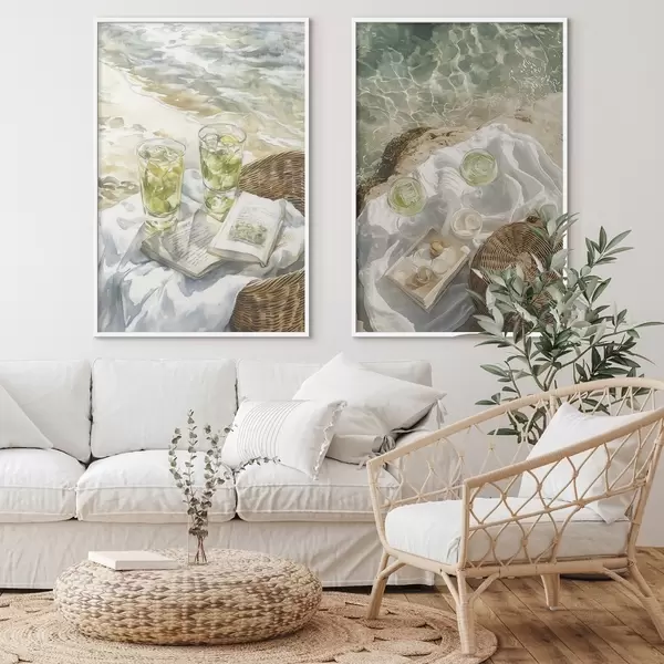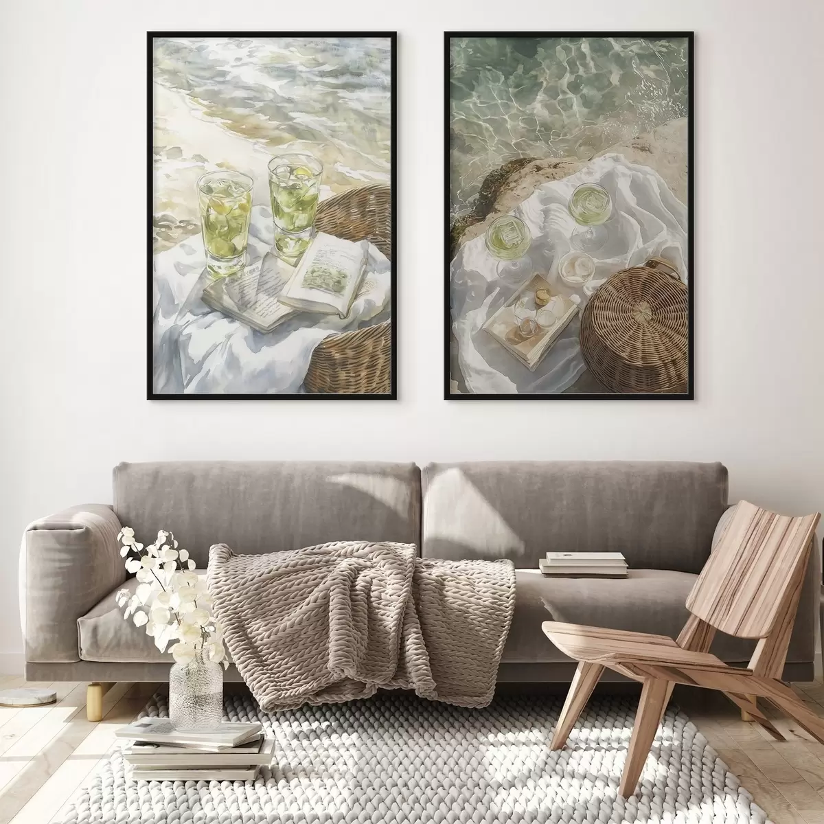 Poster Cócteles en la playa, dibujo estilo acuarela, océano, picnic de verano Nr d00417