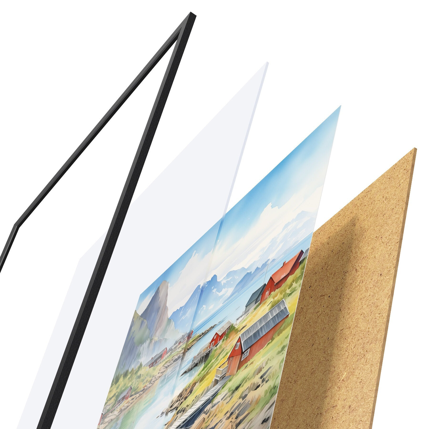 El póster consta de marco, plexiglás, imagen impresa y soporte de aglomerado. El póster puede colgarse inmediatamente en la pared gracias a los soportes de la parte posterior.