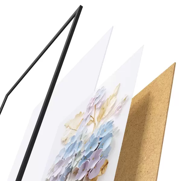 El póster consta de marco, plexiglás, imagen impresa y soporte de aglomerado. El póster puede colgarse inmediatamente en la pared gracias a los soportes de la parte posterior.
