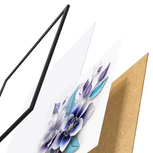 El póster consta de marco, plexiglás, imagen impresa y soporte de aglomerado. El póster puede colgarse inmediatamente en la pared gracias a los soportes de la parte posterior.