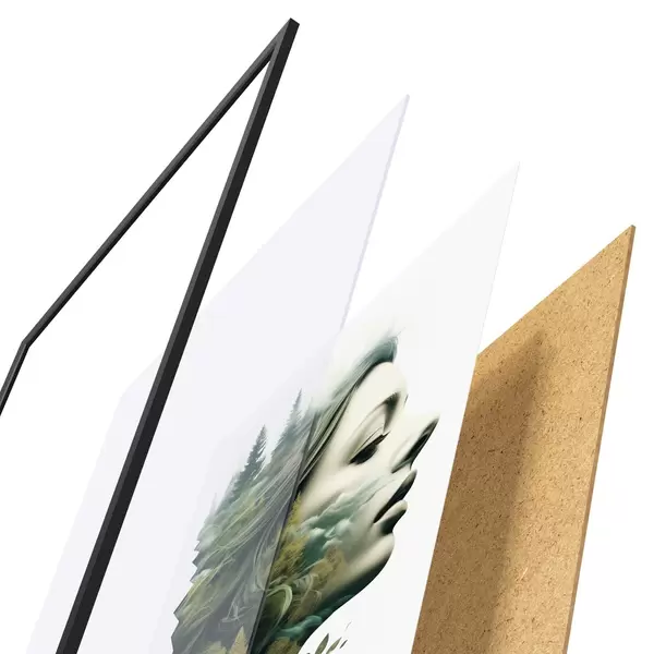 El póster consta de marco, plexiglás, imagen impresa y soporte de aglomerado. El póster puede colgarse inmediatamente en la pared gracias a los soportes de la parte posterior.