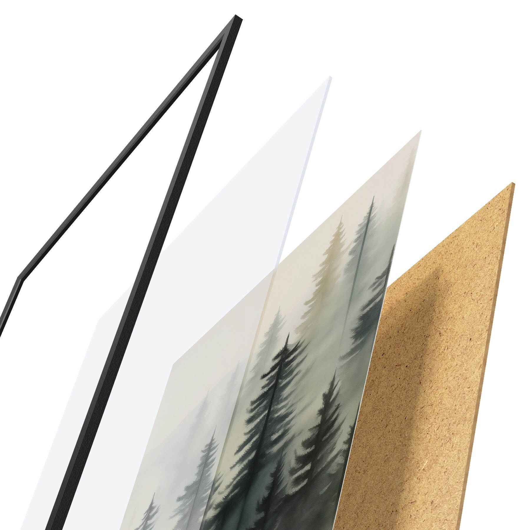 El póster consta de marco, plexiglás, imagen impresa y soporte de aglomerado. El póster puede colgarse inmediatamente en la pared gracias a los soportes de la parte posterior.