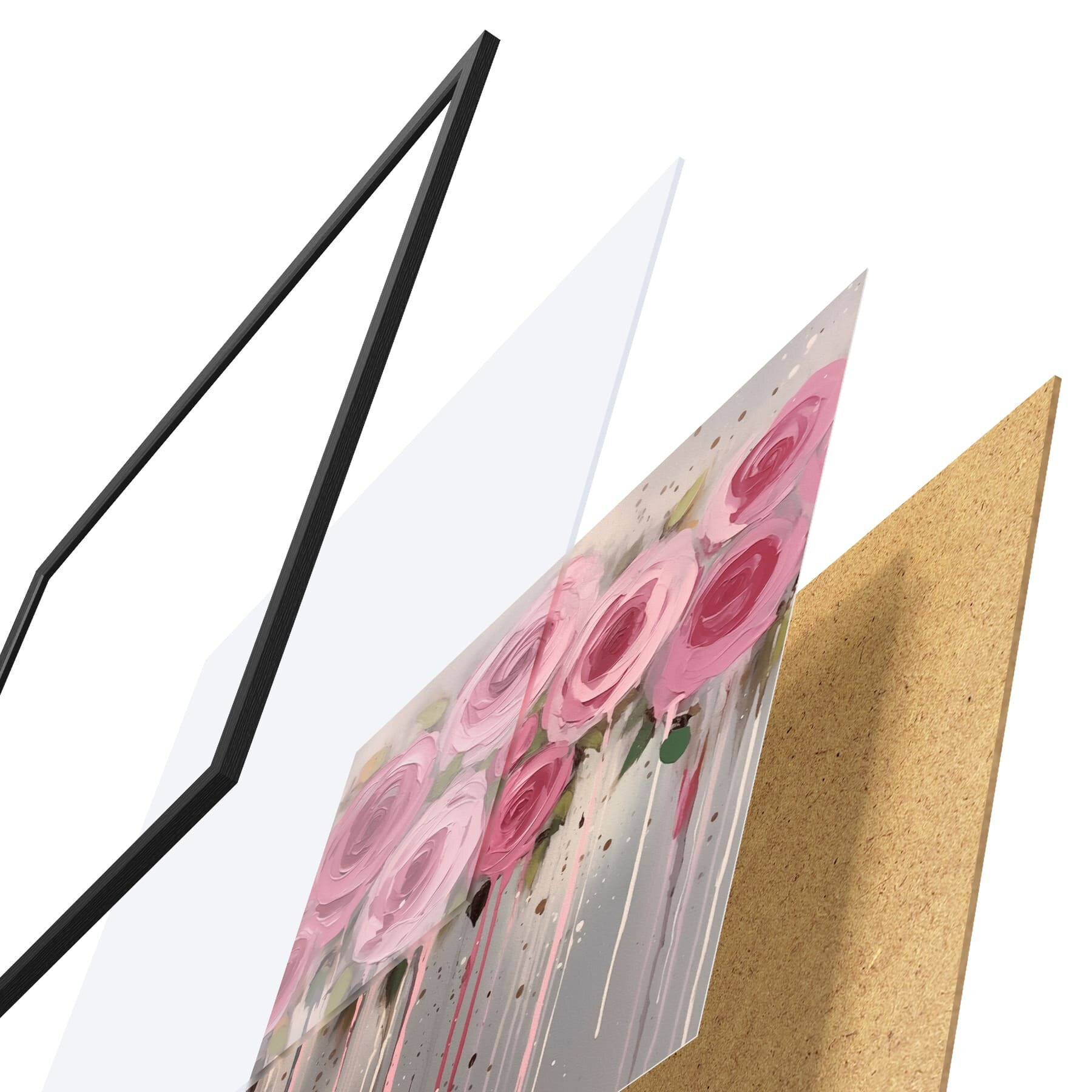 El póster consta de marco, plexiglás, imagen impresa y soporte de aglomerado. El póster puede colgarse inmediatamente en la pared gracias a los soportes de la parte posterior.