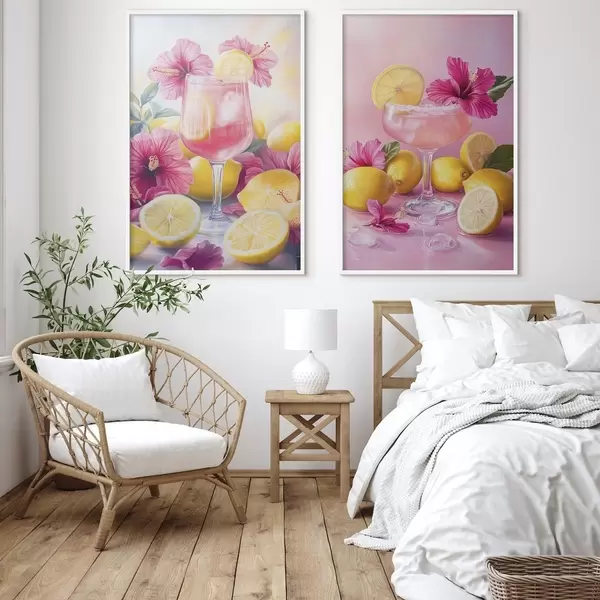 Poster Cócteles con flores de hibisco y limones, veraniegos, jugosos, estilo acuarela Nr d00446