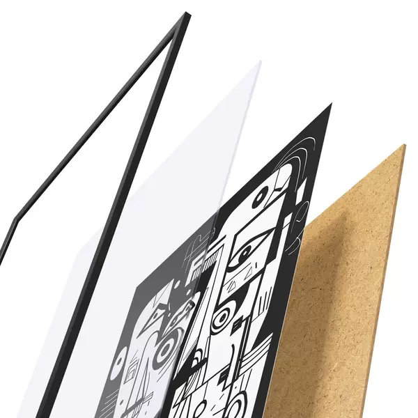 El póster consta de marco, plexiglás, imagen impresa y soporte de aglomerado. El póster puede colgarse inmediatamente en la pared gracias a los soportes de la parte posterior.