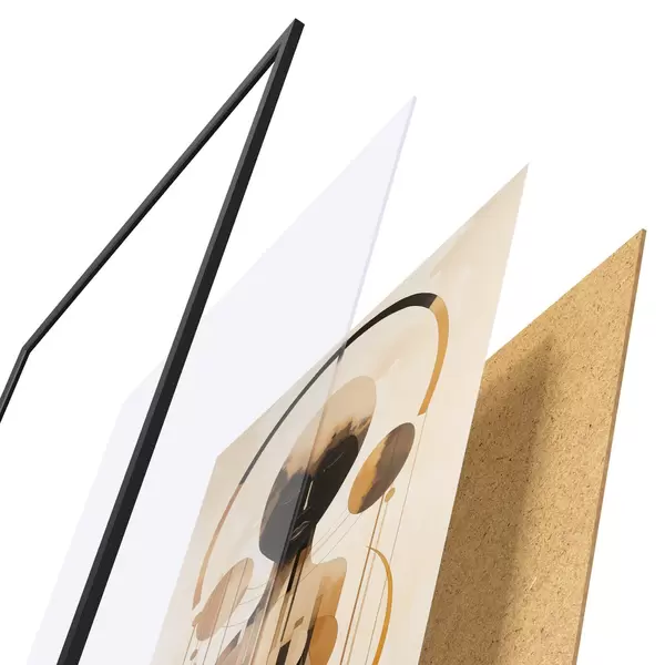 El póster consta de marco, plexiglás, imagen impresa y soporte de aglomerado. El póster puede colgarse inmediatamente en la pared gracias a los soportes de la parte posterior.