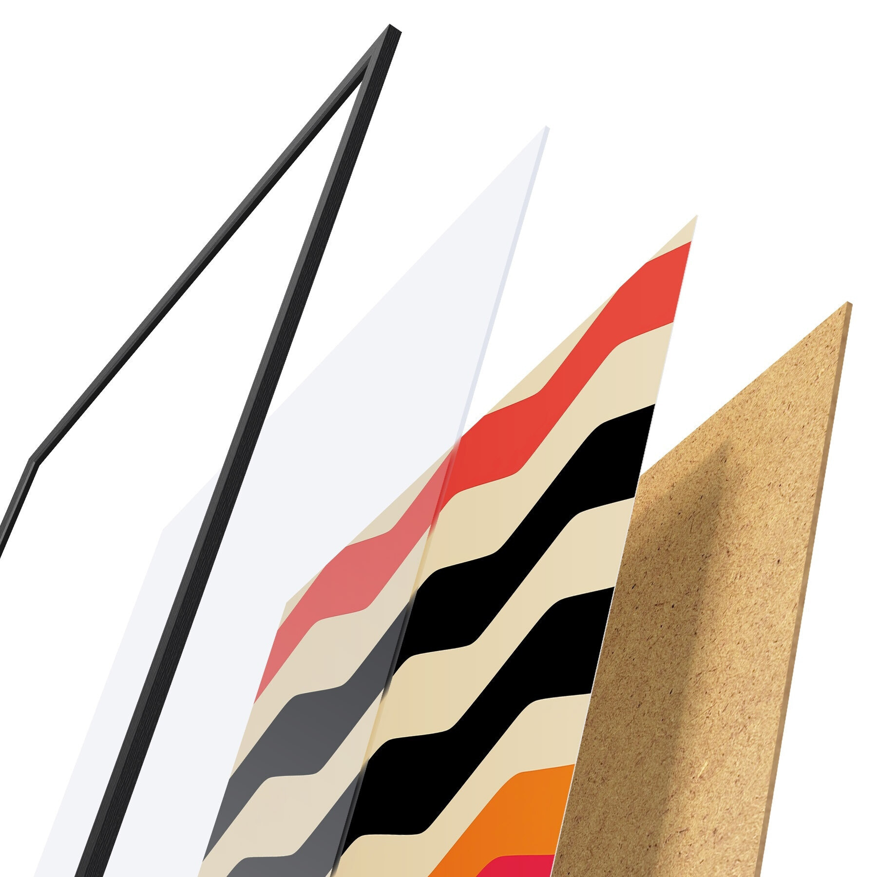El póster consta de marco, plexiglás, imagen impresa y soporte de aglomerado. El póster puede colgarse inmediatamente en la pared gracias a los soportes de la parte posterior.