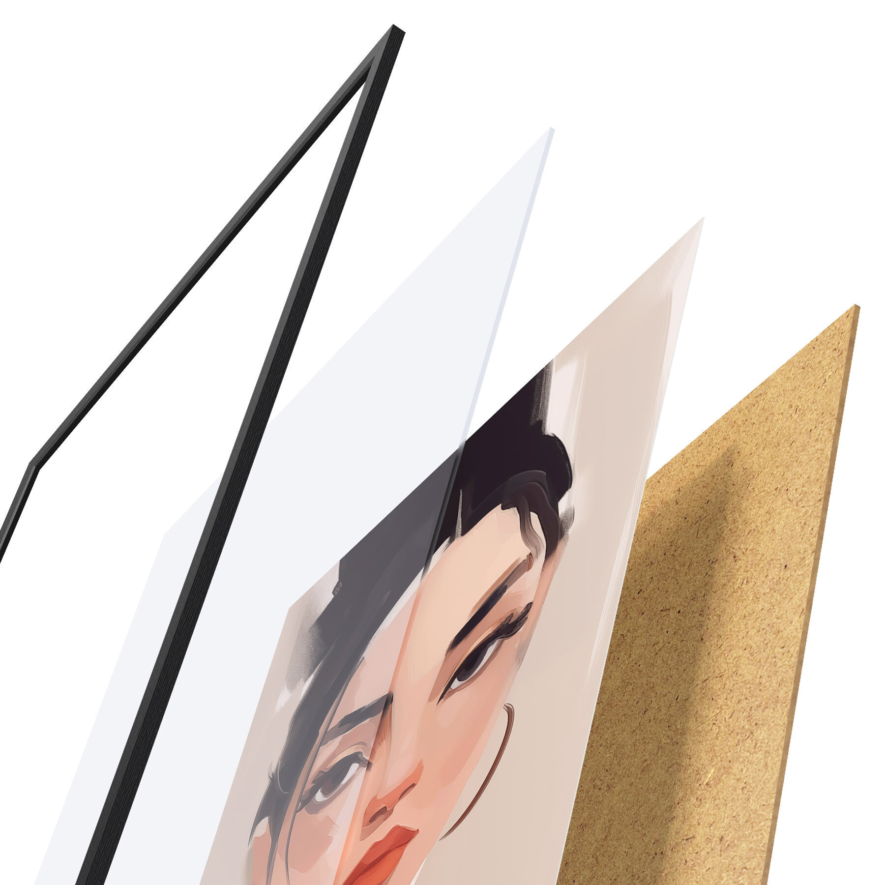 El póster consta de marco, plexiglás, imagen impresa y soporte de aglomerado. El póster puede colgarse inmediatamente en la pared gracias a los soportes de la parte posterior.
