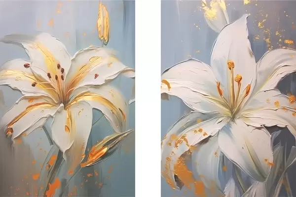 Poster Lirios blancos con trazos amarillos sobre fondo azul Nr d00497
