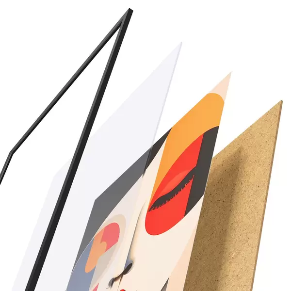 El póster consta de marco, plexiglás, imagen impresa y soporte de aglomerado. El póster puede colgarse inmediatamente en la pared gracias a los soportes de la parte posterior.