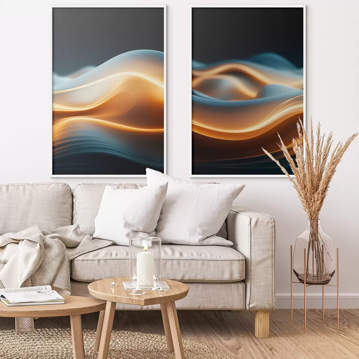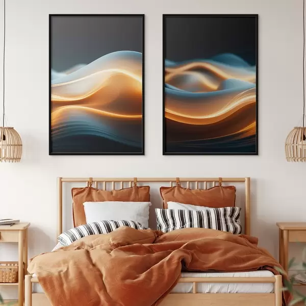Poster Formas abstractas fluidas con líneas naranjas, curvas y líneas suaves, composición dinámica, fondo oscuro Nr d00526