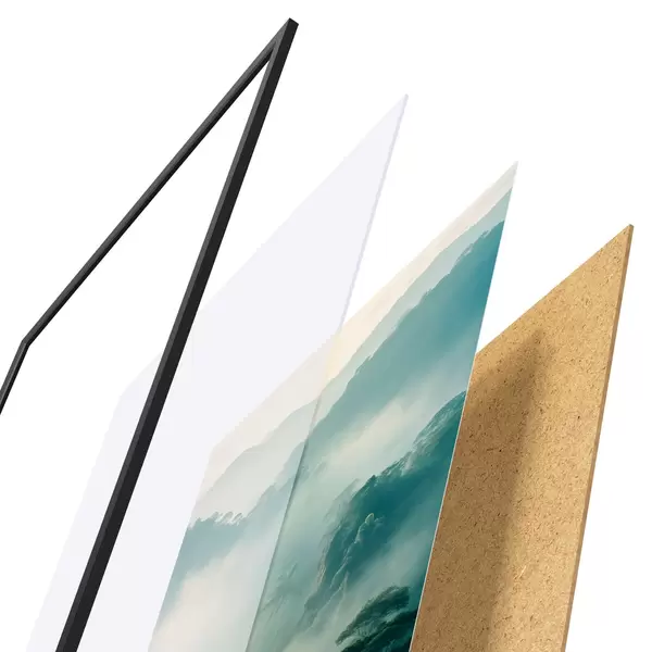 El póster consta de marco, plexiglás, imagen impresa y soporte de aglomerado. El póster puede colgarse inmediatamente en la pared gracias a los soportes de la parte posterior.
