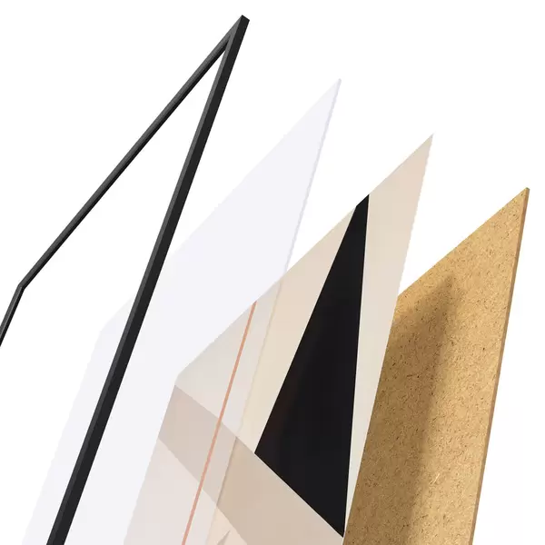 El póster consta de marco, plexiglás, imagen impresa y soporte de aglomerado. El póster puede colgarse inmediatamente en la pared gracias a los soportes de la parte posterior.