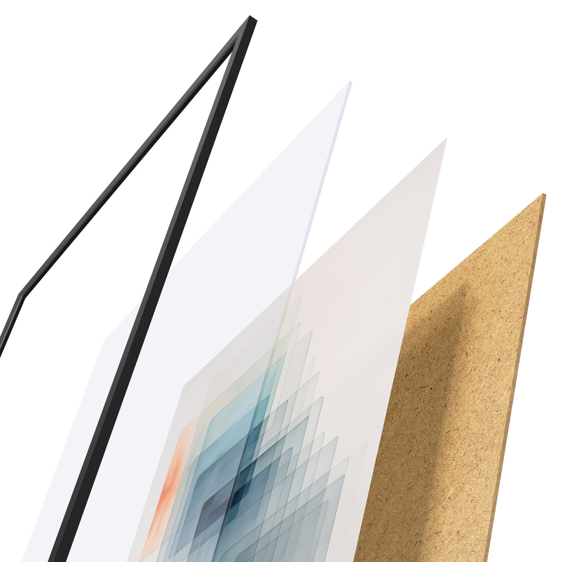 El póster consta de marco, plexiglás, imagen impresa y soporte de aglomerado. El póster puede colgarse inmediatamente en la pared gracias a los soportes de la parte posterior.