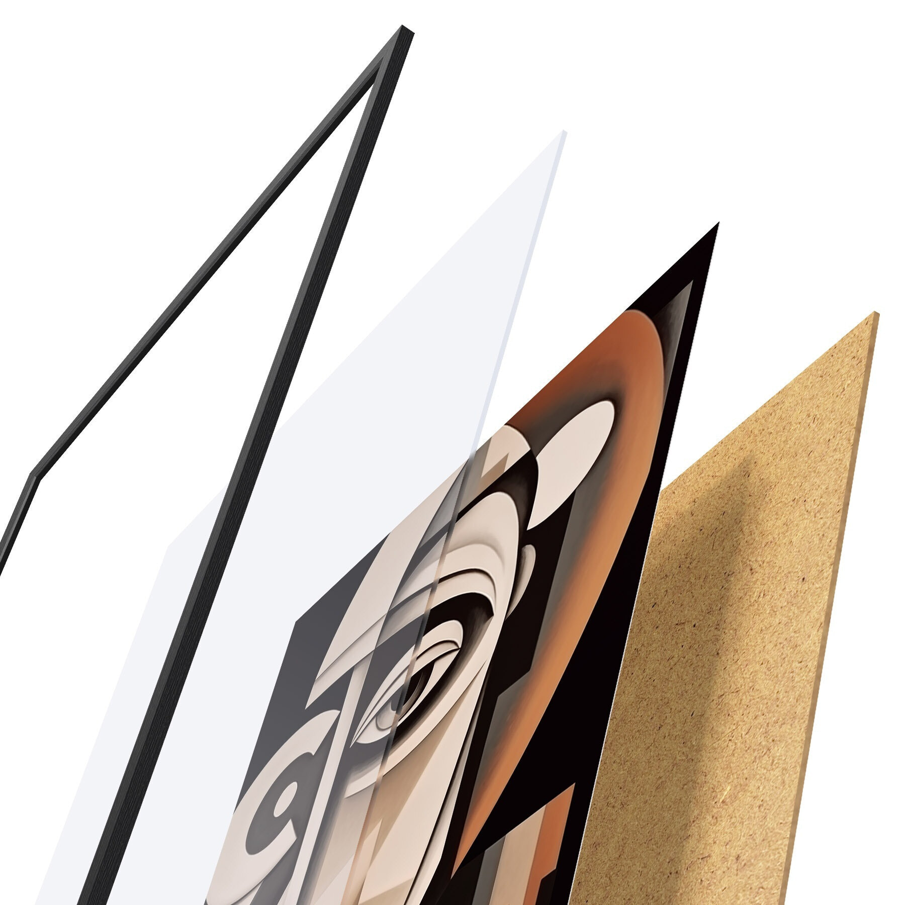 El póster consta de marco, plexiglás, imagen impresa y soporte de aglomerado. El póster puede colgarse inmediatamente en la pared gracias a los soportes de la parte posterior.