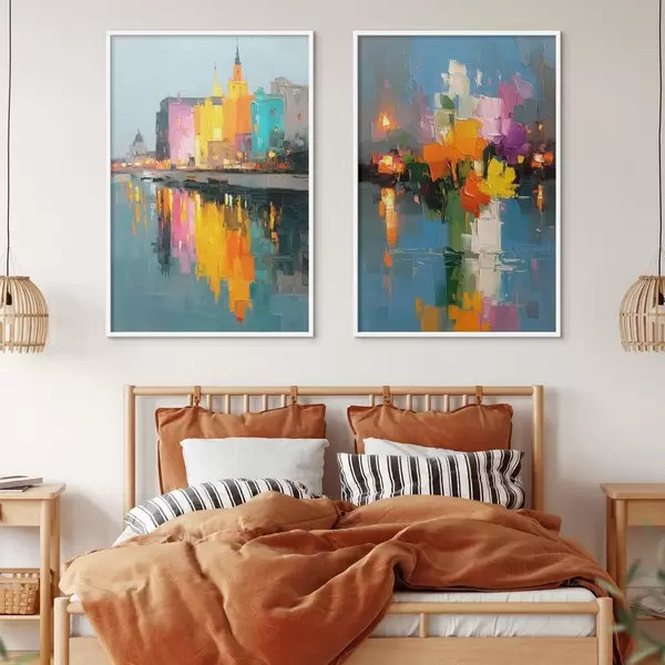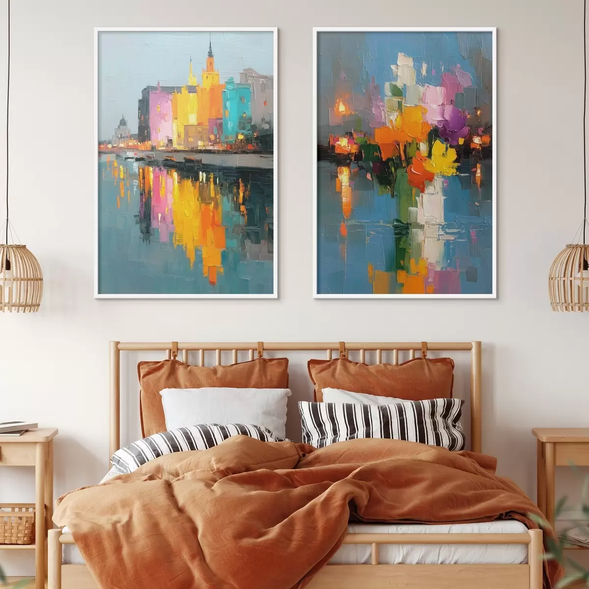 Poster Dinámica urbana: composición abstracta con reflejos de luces en el río Nr d00569