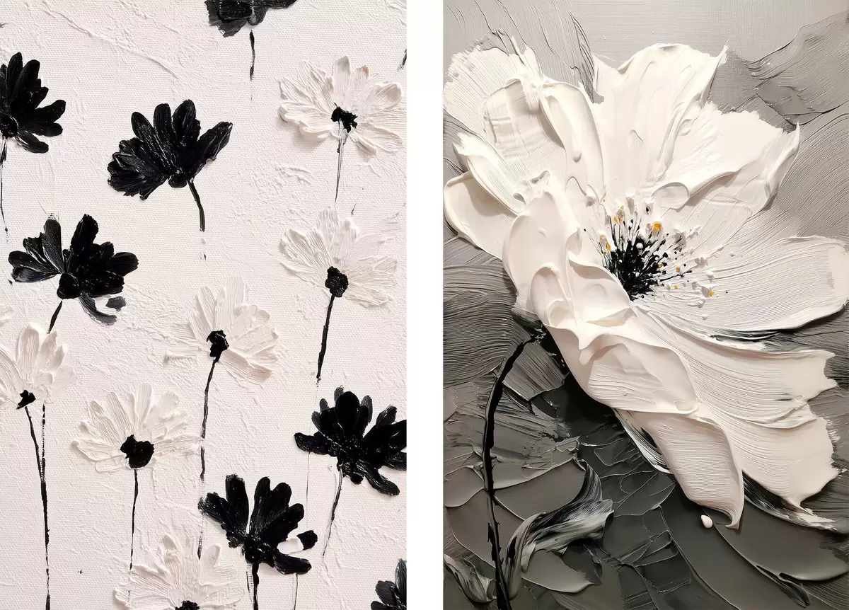Poster Díptico de flores blancas y negras de estilo moderno d00571
