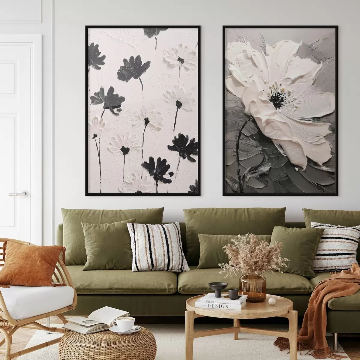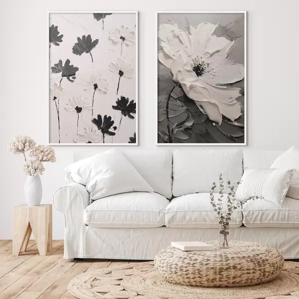 Poster Díptico de flores blancas y negras de estilo moderno Nr d00571
