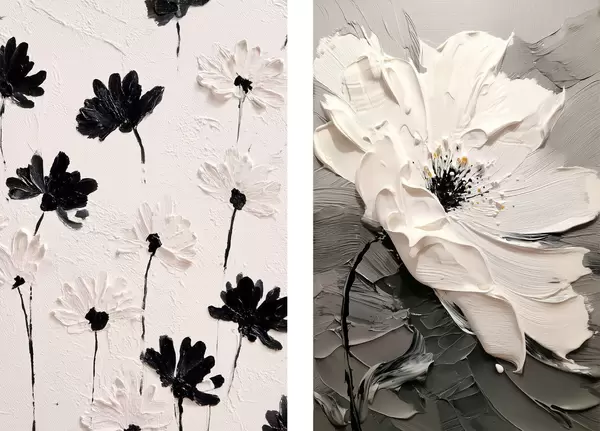 Poster Díptico de flores blancas y negras de estilo moderno Nr d00571