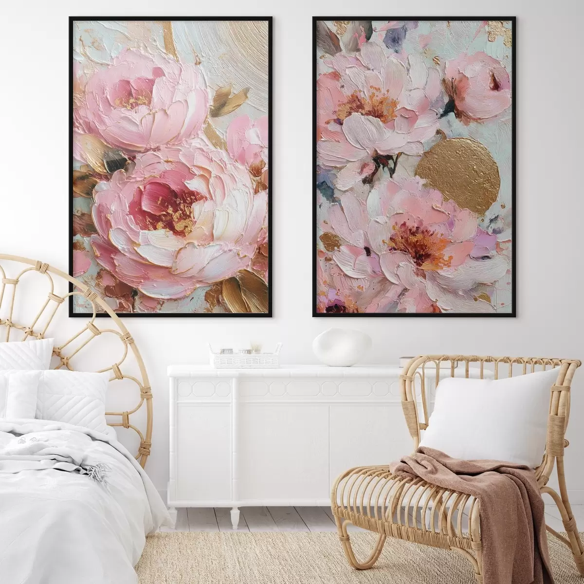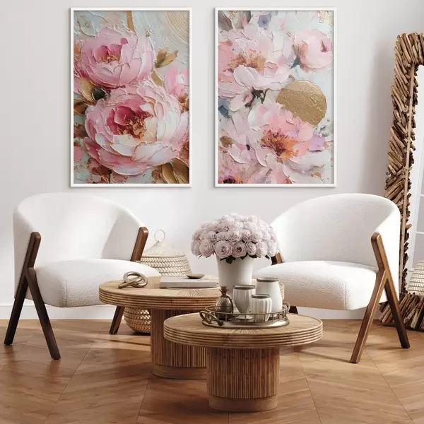 Poster Pintura empastada volumétrica con peonías rosas y detalles texturados Nr d00573