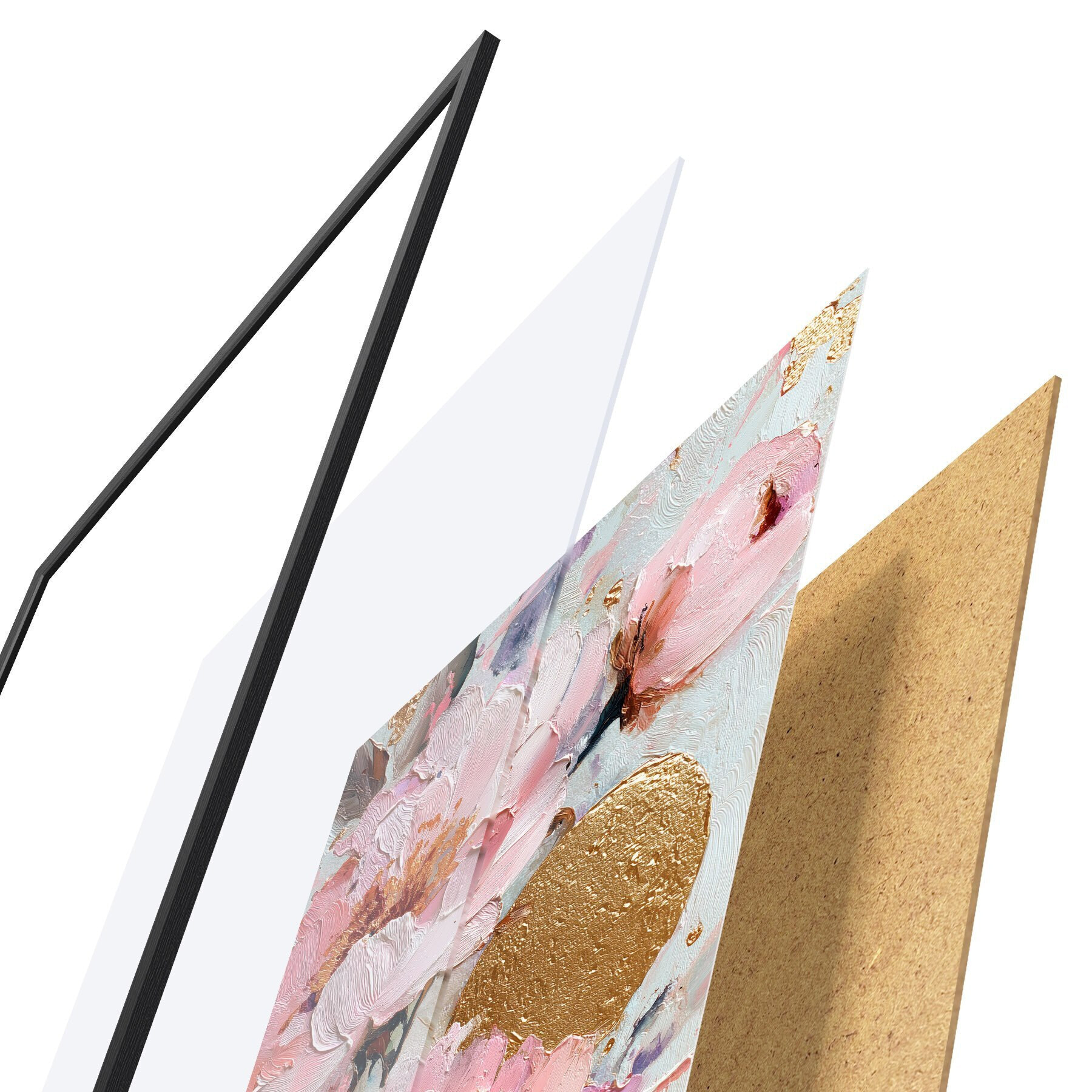 Vendemos cuadros en bastidor: se trata de un marco de madera sobre el que se extiende el lienzo. Este cuadro no necesita marco; puedes colgarlo directamente en la pared.