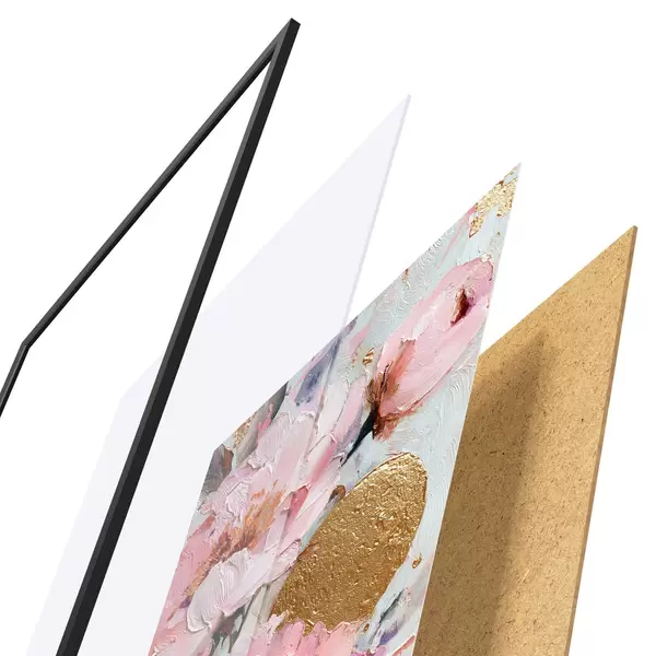 El póster consta de marco, plexiglás, imagen impresa y soporte de aglomerado. El póster puede colgarse inmediatamente en la pared gracias a los soportes de la parte posterior.