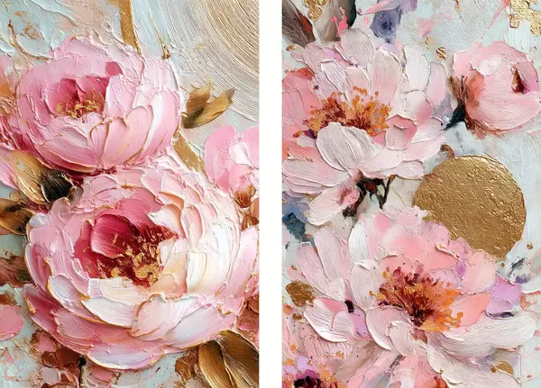 Poster Pintura empastada volumétrica con peonías rosas y detalles texturados Nr d00573