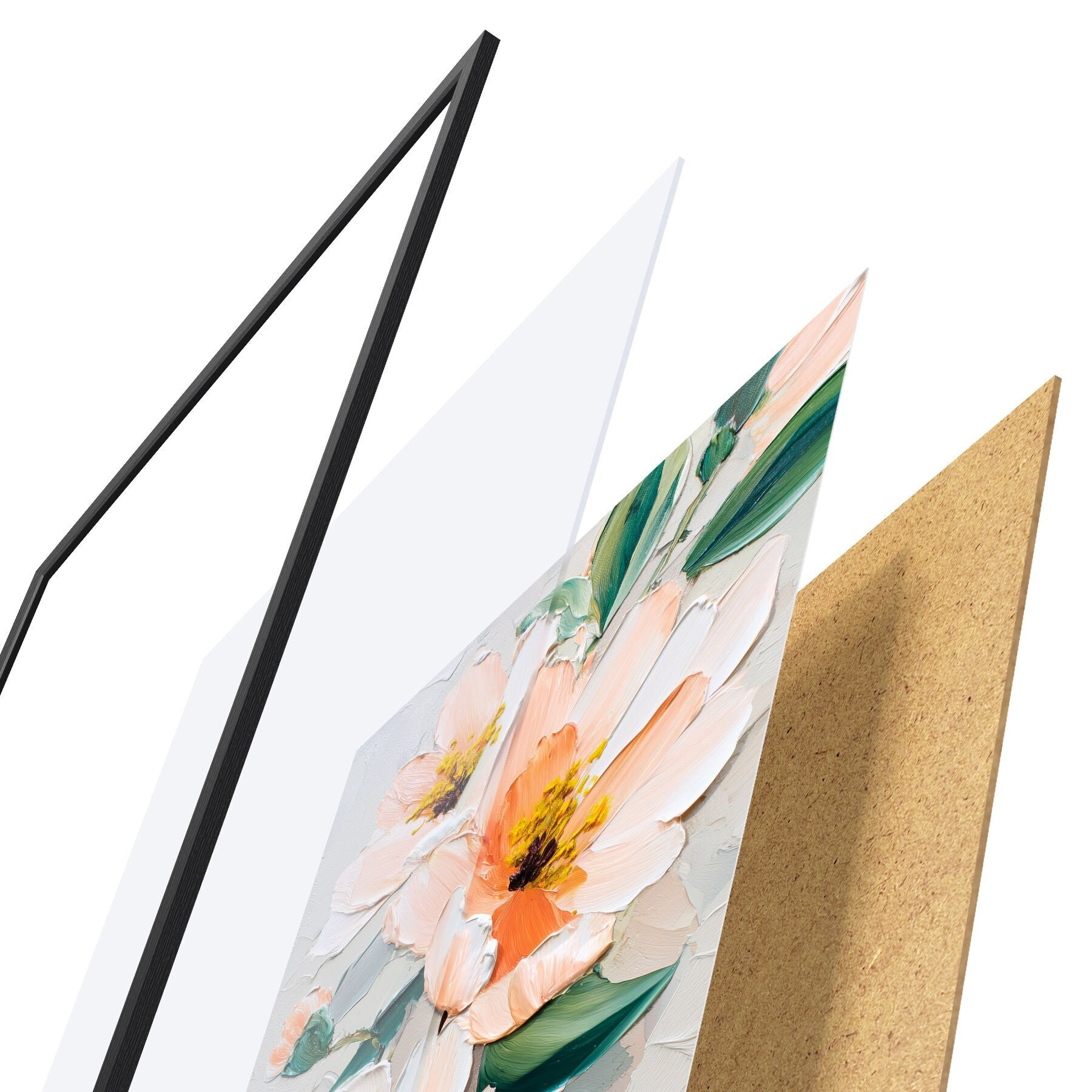 El póster consta de marco, plexiglás, imagen impresa y soporte de aglomerado. El póster puede colgarse inmediatamente en la pared gracias a los soportes de la parte posterior.