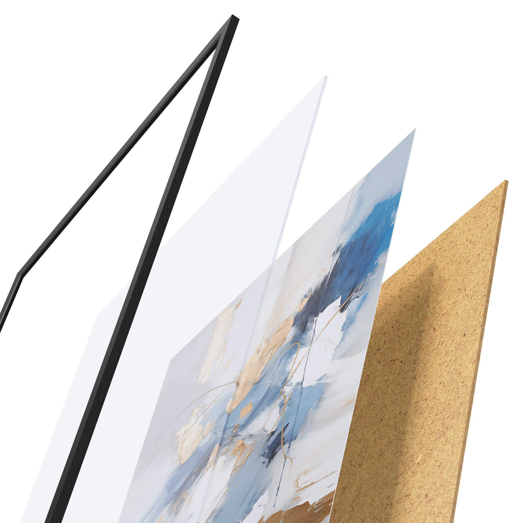 El póster consta de marco, plexiglás, imagen impresa y soporte de aglomerado. El póster puede colgarse inmediatamente en la pared gracias a los soportes de la parte posterior.