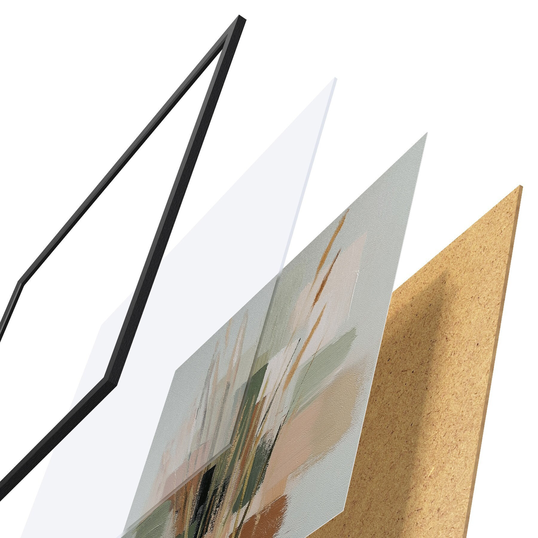 El póster consta de marco, plexiglás, imagen impresa y soporte de aglomerado. El póster puede colgarse inmediatamente en la pared gracias a los soportes de la parte posterior.