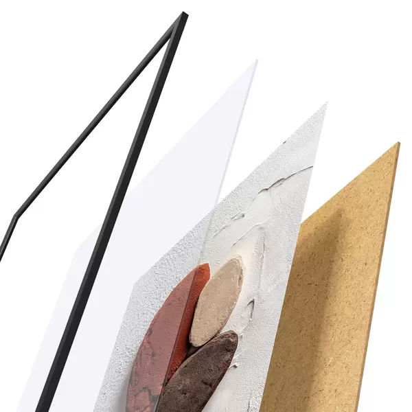 El póster consta de marco, plexiglás, imagen impresa y soporte de aglomerado. El póster puede colgarse inmediatamente en la pared gracias a los soportes de la parte posterior.