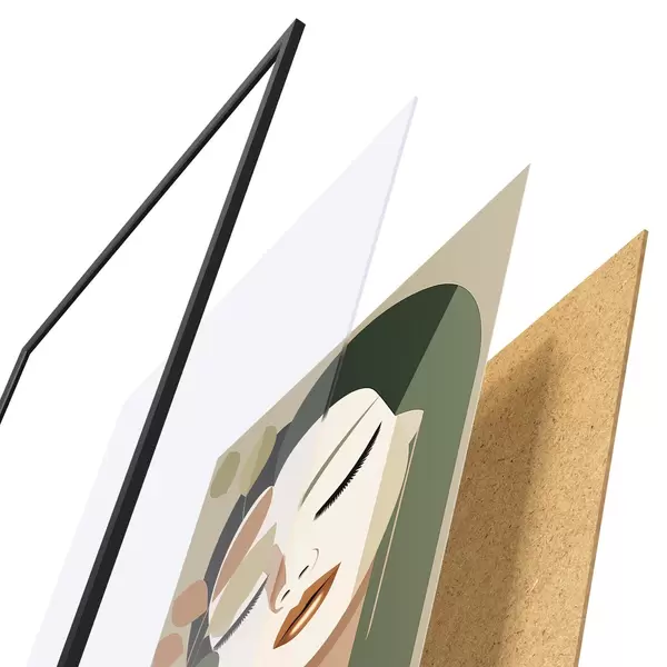 El póster consta de marco, plexiglás, imagen impresa y soporte de aglomerado. El póster puede colgarse inmediatamente en la pared gracias a los soportes de la parte posterior.