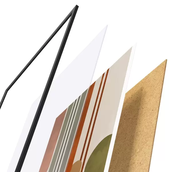 El póster consta de marco, plexiglás, imagen impresa y soporte de aglomerado. El póster puede colgarse inmediatamente en la pared gracias a los soportes de la parte posterior.
