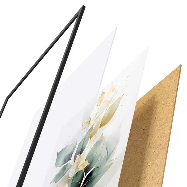 El póster consta de marco, plexiglás, imagen impresa y soporte de aglomerado. El póster puede colgarse inmediatamente en la pared gracias a los soportes de la parte posterior.