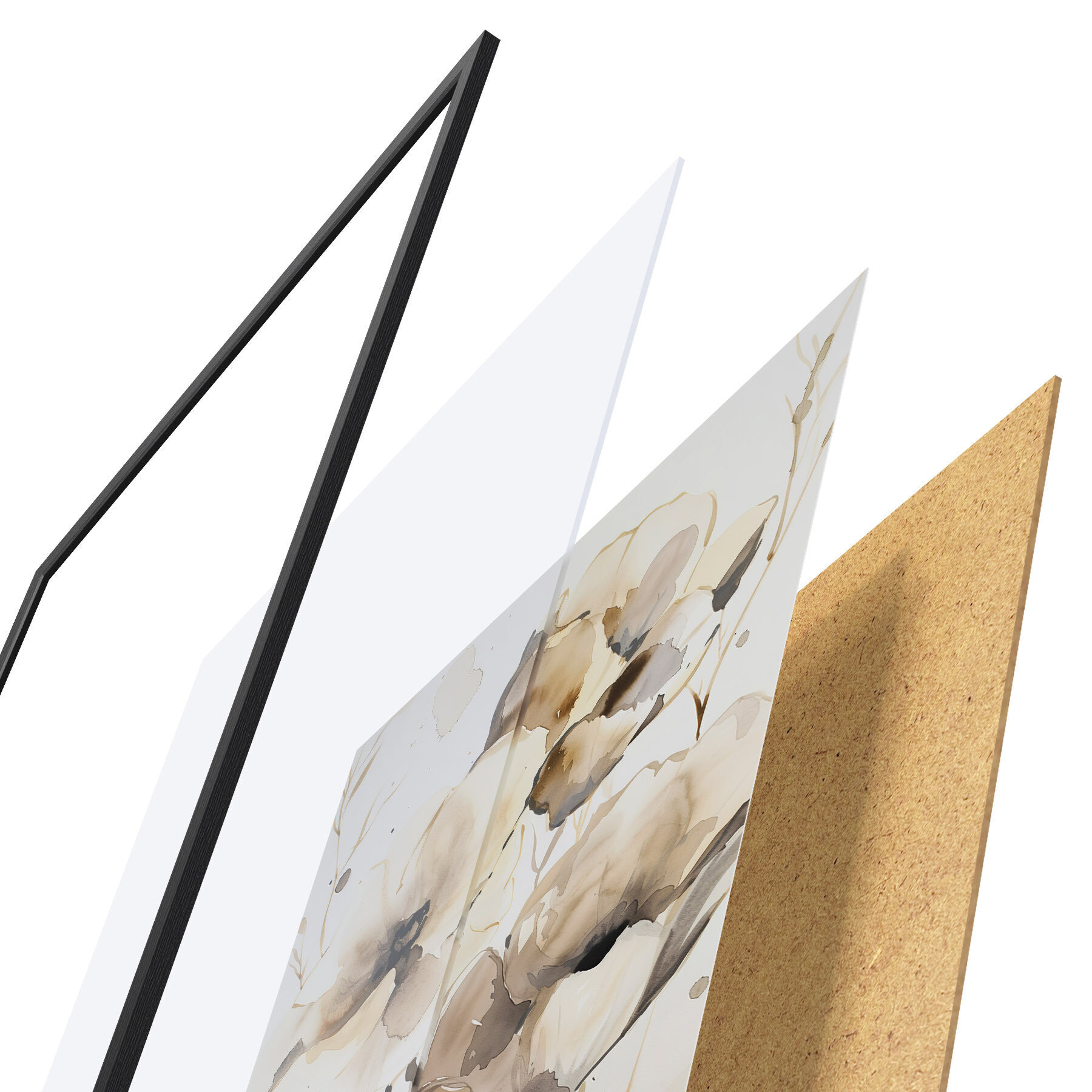El póster consta de marco, plexiglás, imagen impresa y soporte de aglomerado. El póster puede colgarse inmediatamente en la pared gracias a los soportes de la parte posterior.