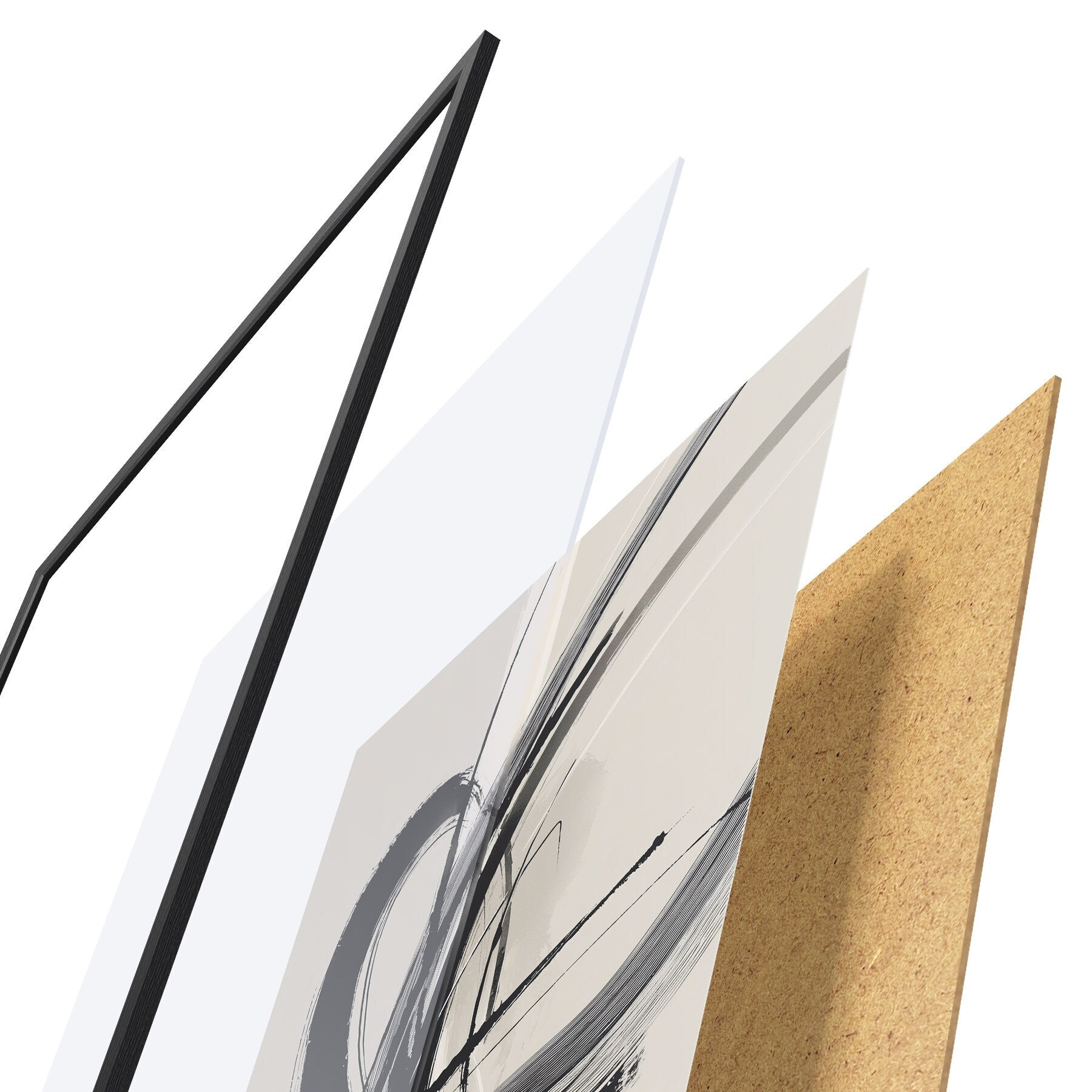El póster consta de marco, plexiglás, imagen impresa y soporte de aglomerado. El póster puede colgarse inmediatamente en la pared gracias a los soportes de la parte posterior.