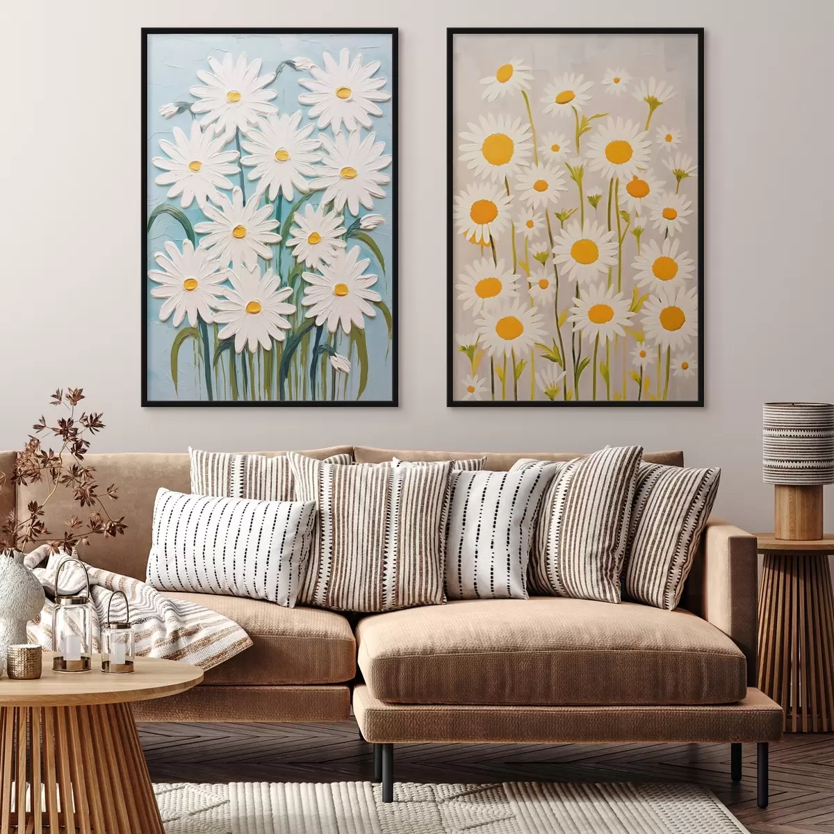 Poster Frescor primaveral: díptico con voluminosas margaritas en estilo empastado Nr d00633