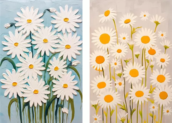 Poster Frescor primaveral: díptico con voluminosas margaritas en estilo empastado Nr d00633