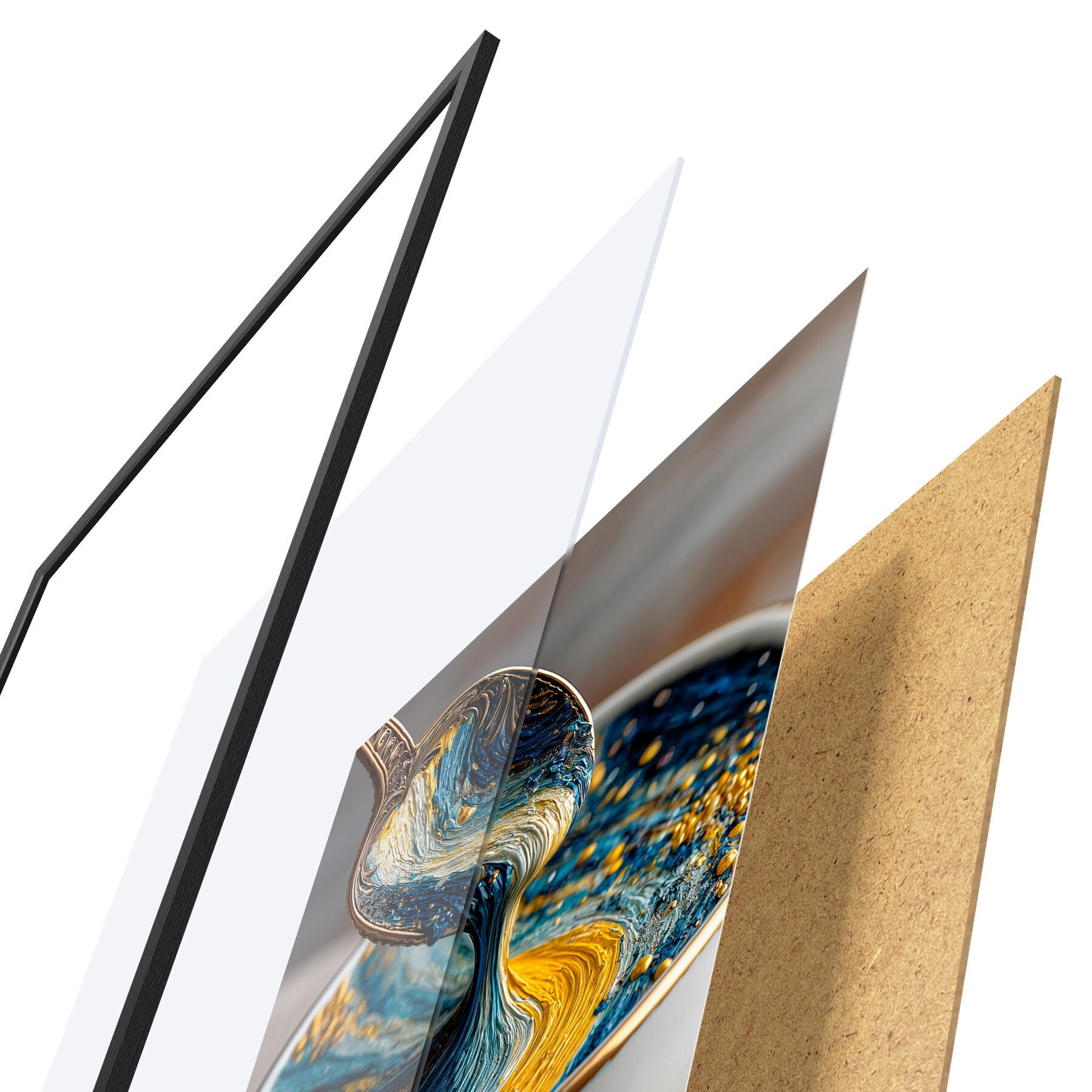 Vendemos cuadros en bastidor: se trata de un marco de madera sobre el que se extiende el lienzo. Este cuadro no necesita marco; puedes colgarlo directamente en la pared.