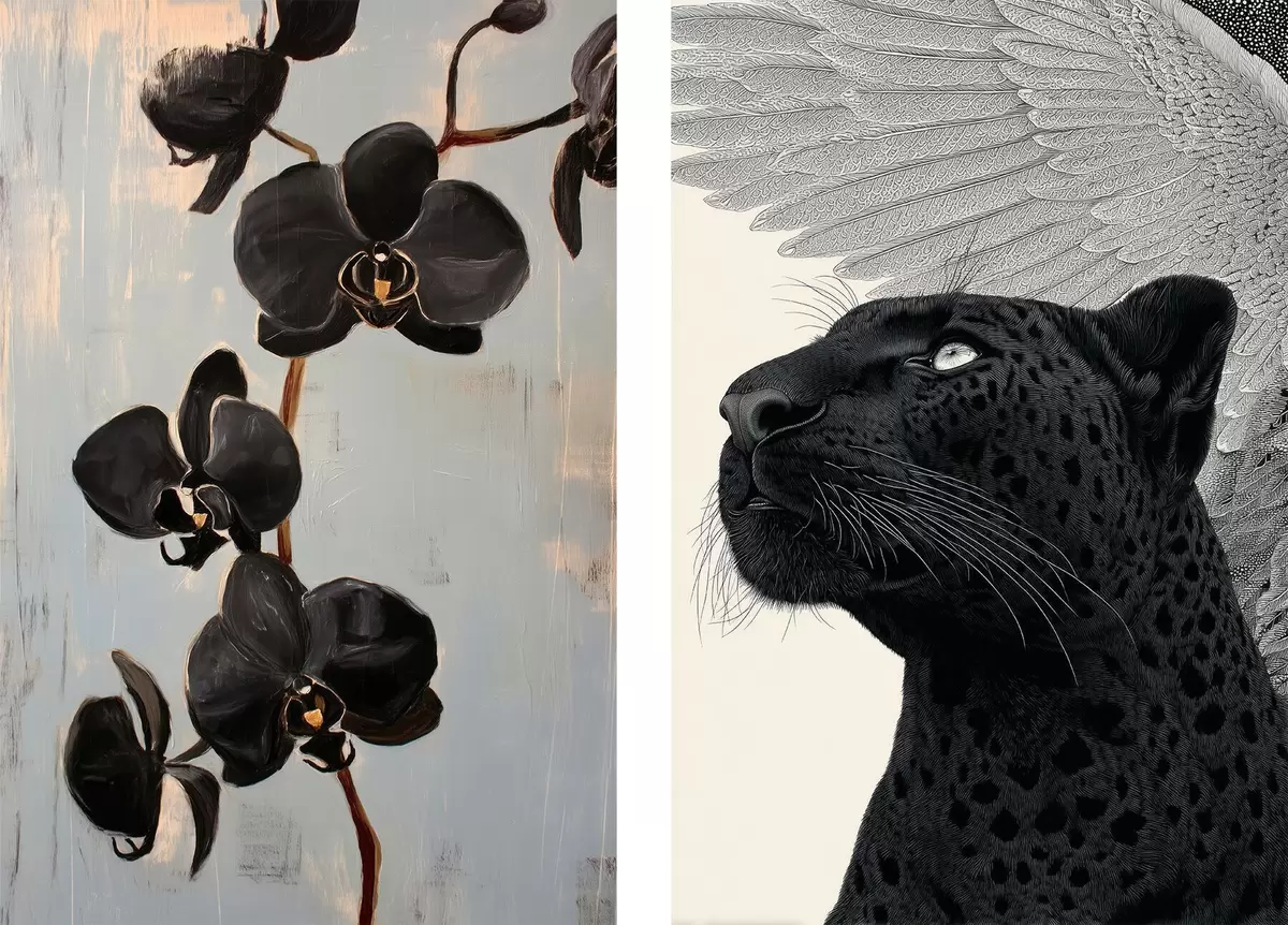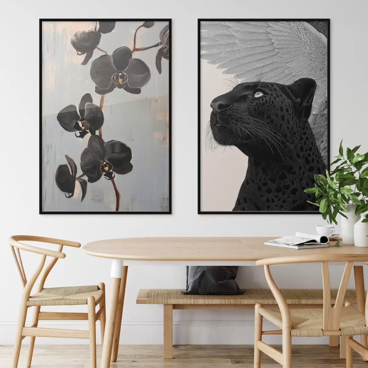Poster Orquídeas oscuras y bestia alada: composición artística Nr d00640