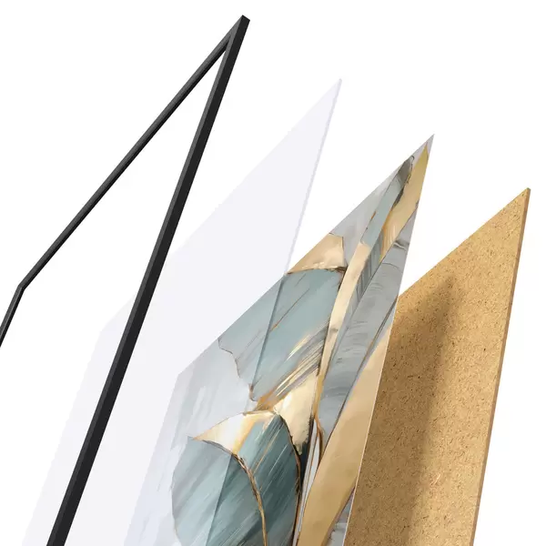 El póster consta de marco, plexiglás, imagen impresa y soporte de aglomerado. El póster puede colgarse inmediatamente en la pared gracias a los soportes de la parte posterior.