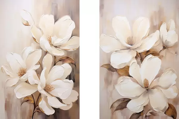 Poster Flores blancas de magnolia sobre un fondo suave y difuminado de tonos beige y marrones, estilo pintura Nr d00655