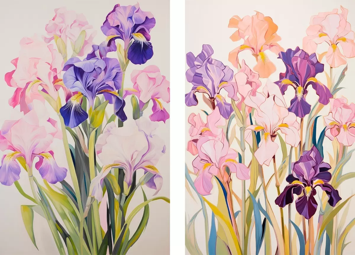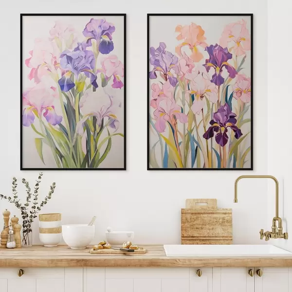 Poster Iris en tonos pastel sobre fondo claro d00660