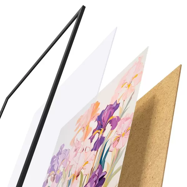 El póster consta de marco, plexiglás, imagen impresa y soporte de aglomerado. El póster puede colgarse inmediatamente en la pared gracias a los soportes de la parte posterior.