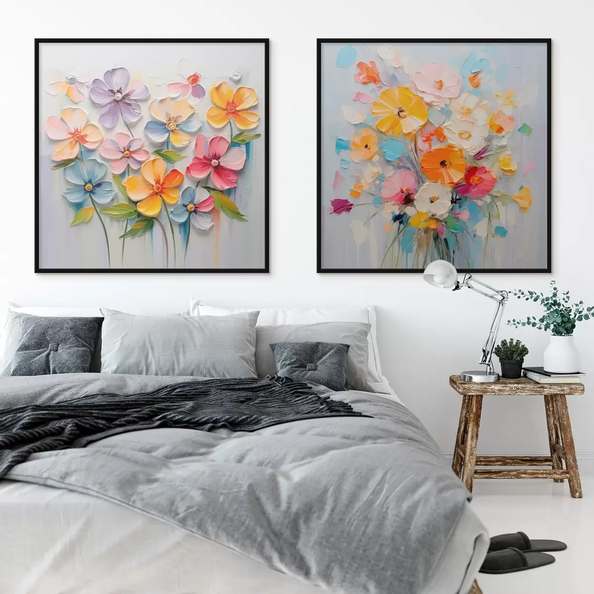 Poster Composiciones abstractas de flores brillantes realizadas en técnica impasto d00662