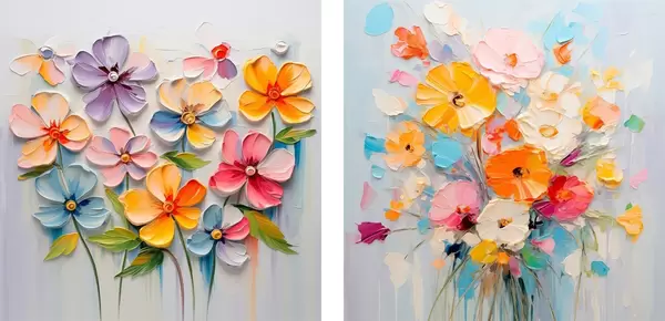 Poster Composiciones abstractas de flores brillantes realizadas en técnica impasto d00662