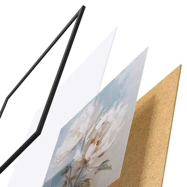El póster consta de marco, plexiglás, imagen impresa y soporte de aglomerado. El póster puede colgarse inmediatamente en la pared gracias a los soportes de la parte posterior.