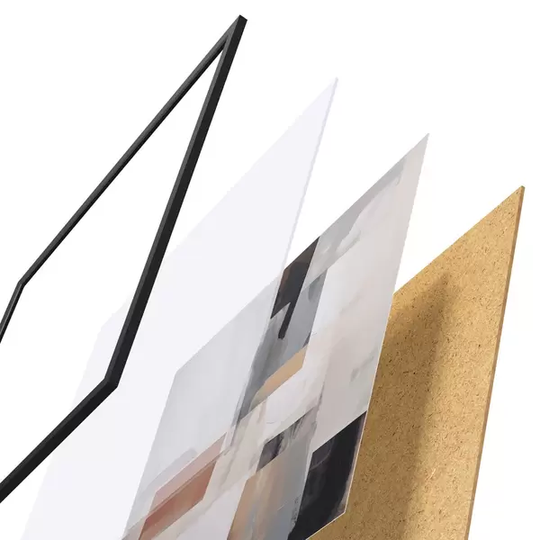El póster consta de marco, plexiglás, imagen impresa y soporte de aglomerado. El póster puede colgarse inmediatamente en la pared gracias a los soportes de la parte posterior.