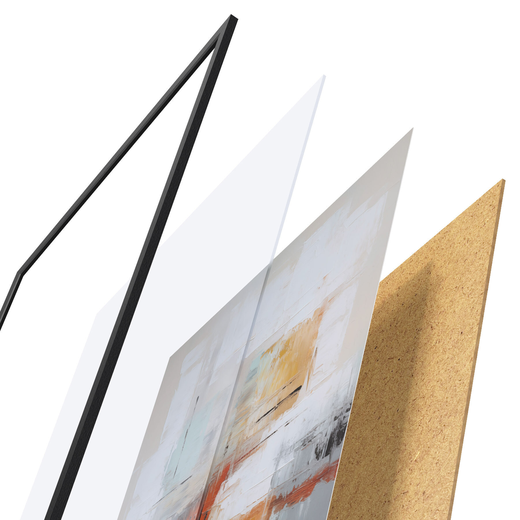 El póster consta de marco, plexiglás, imagen impresa y soporte de aglomerado. El póster puede colgarse inmediatamente en la pared gracias a los soportes de la parte posterior.